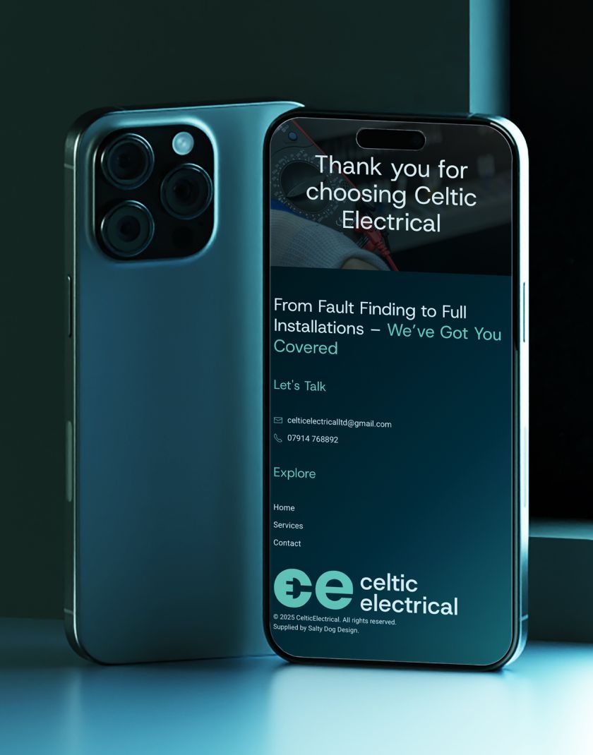 Salty Dog Design was proud to create the logo, branding, and website for Celtic Electrical, an electrical company based in Aberystwyth.